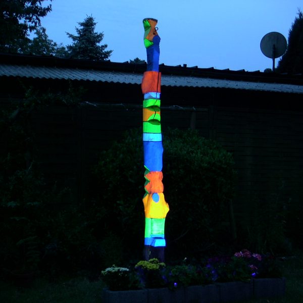 Bearbeiteter Birkenstamm, mit Leuchtfarbe bemalt, mit Schwarzlicht beleuchtet. Kunstbjekte Übersicht Kategorie: Holzobjekt Wächter, Kunstobjekte07/29/2018Album-NavigationZurückVorheriges Album:Yin und YangNächstesNächstes Album:Lichtfächer